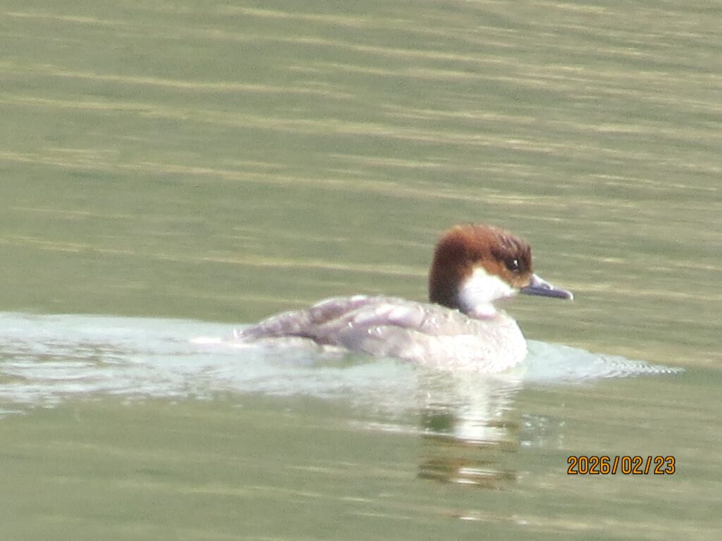 最初の七ツ池に向かっていると、ウグイスがさえずりの練習をしていて春を感じました。七ツ池に着くとミコアイサの雌を発見しました。他にもカンムリカイツブリが近くにいたり、