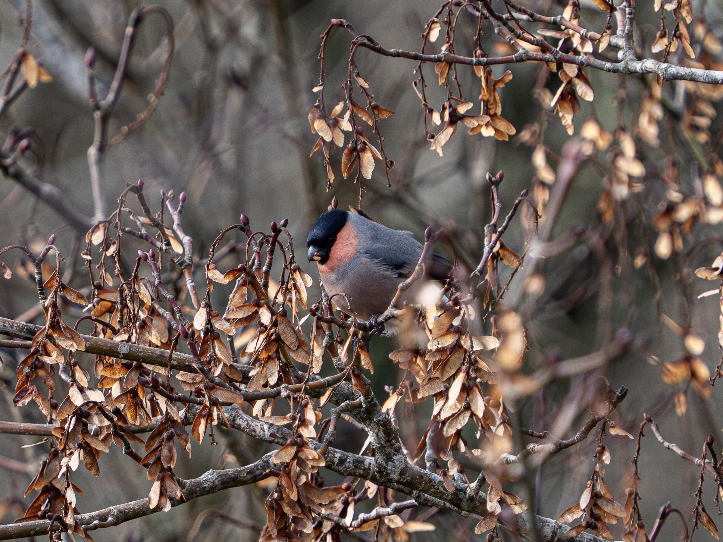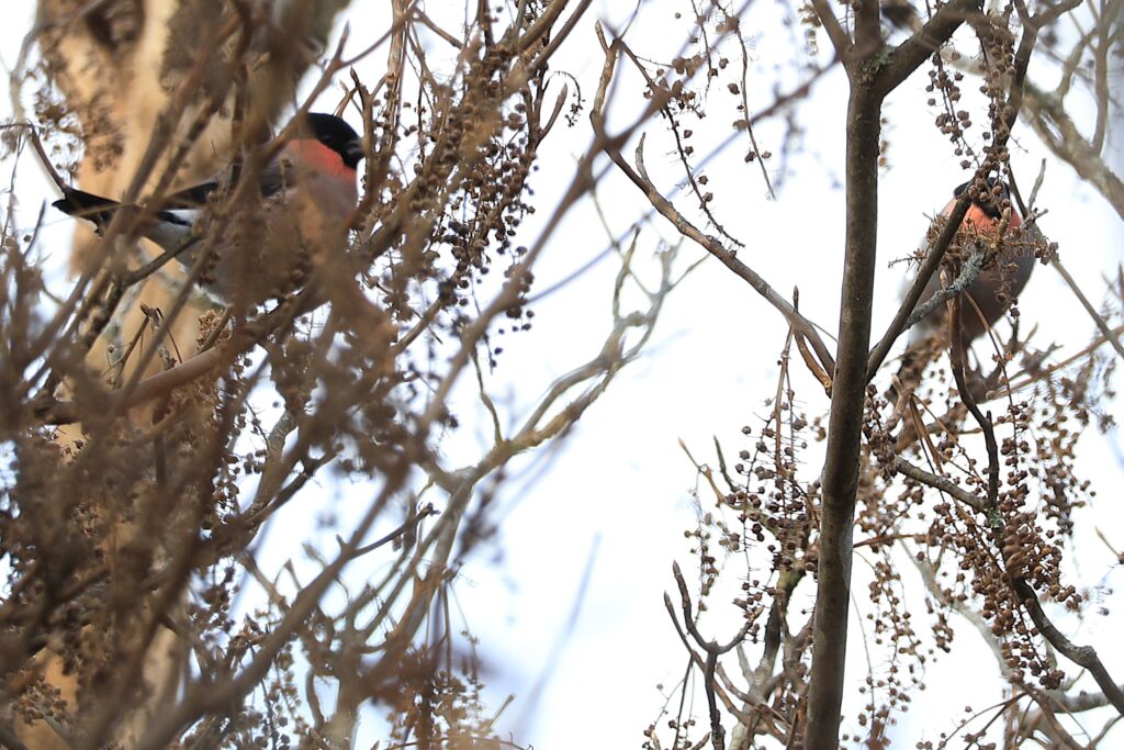 ちはや園地の休憩所で昼食をとり、空に少しずつ明るさが戻り始めると、雰囲気が一変しました。アトリ、カヤクグリ、ウソが次々と姿を見せはじめ、特に印象的だったのは、展望台でのウソの群れです。8羽ほどの群れが食事をする様子を、参加者全員で落ち着いて観察することができ、思わず時間を忘れて見入ってしまいました。