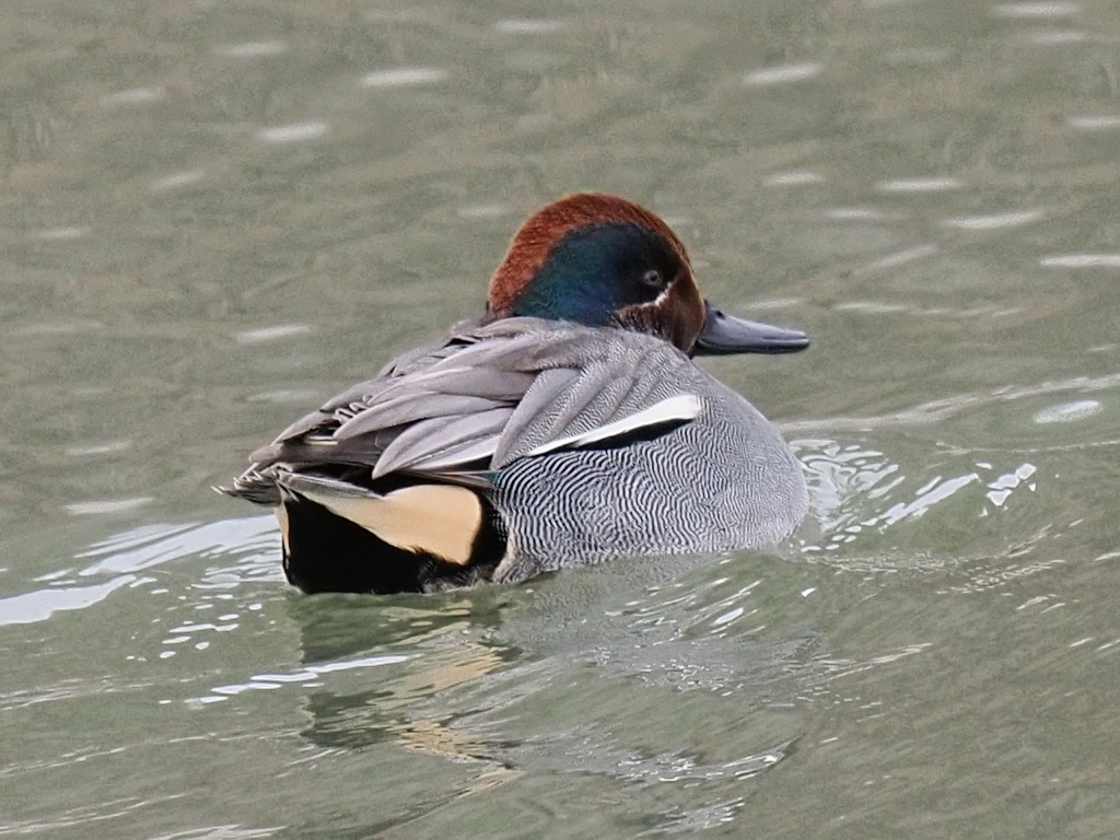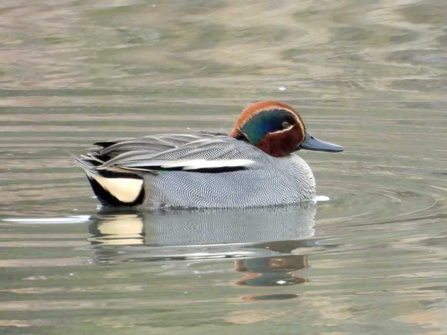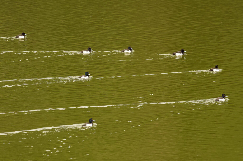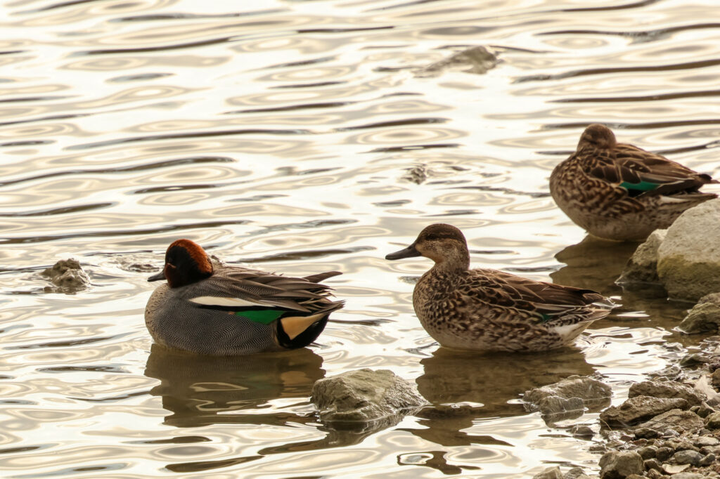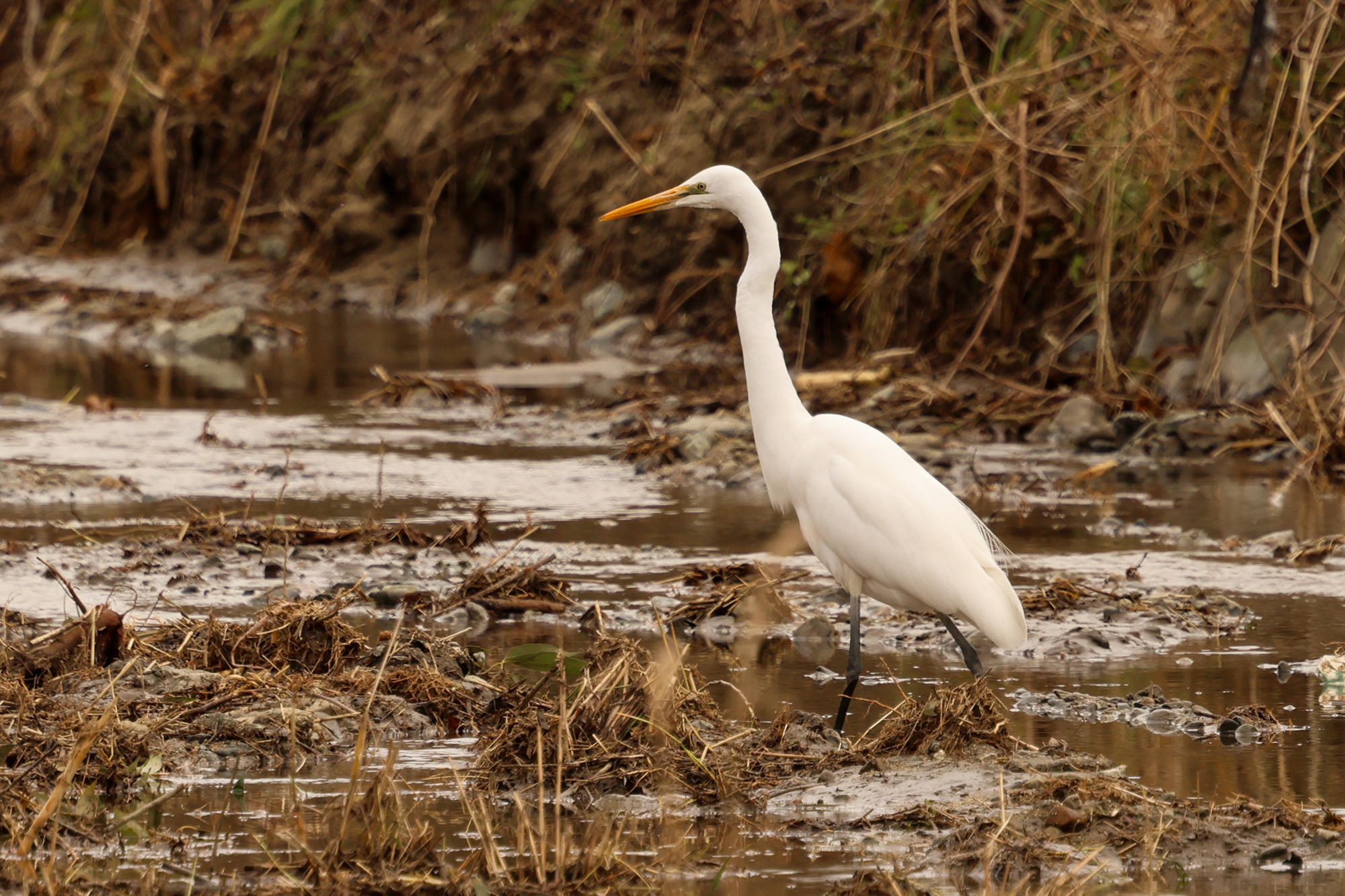 当日は予想していたより寒くなく、比較的快適な天候で集合場所の樫原神宮前駅東口をスタート。石川池付近ではミコアイサの雌やアオジなどを観察しました。また池の奥の方にいたダイサギについてリーダーより冬鳥として渡来する種と国内で繁殖する種の足の色の違いについて説明を受けました。