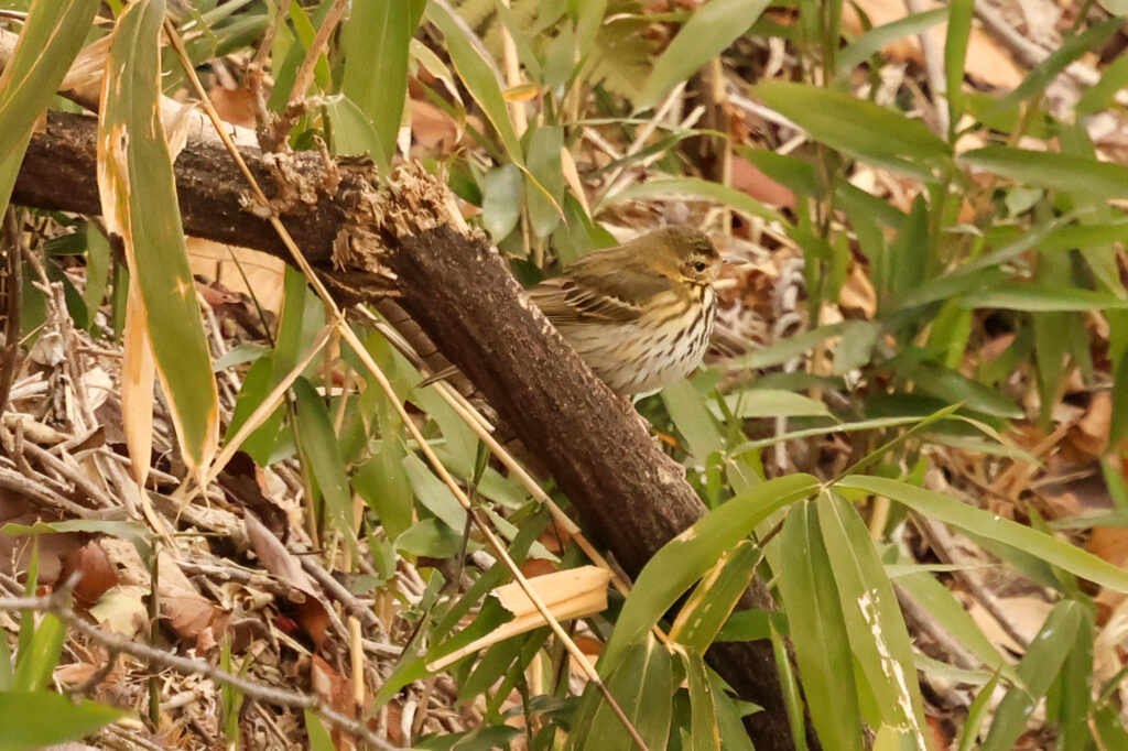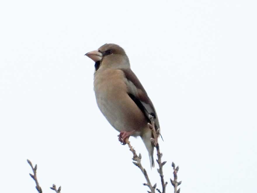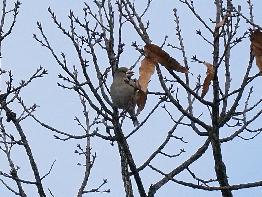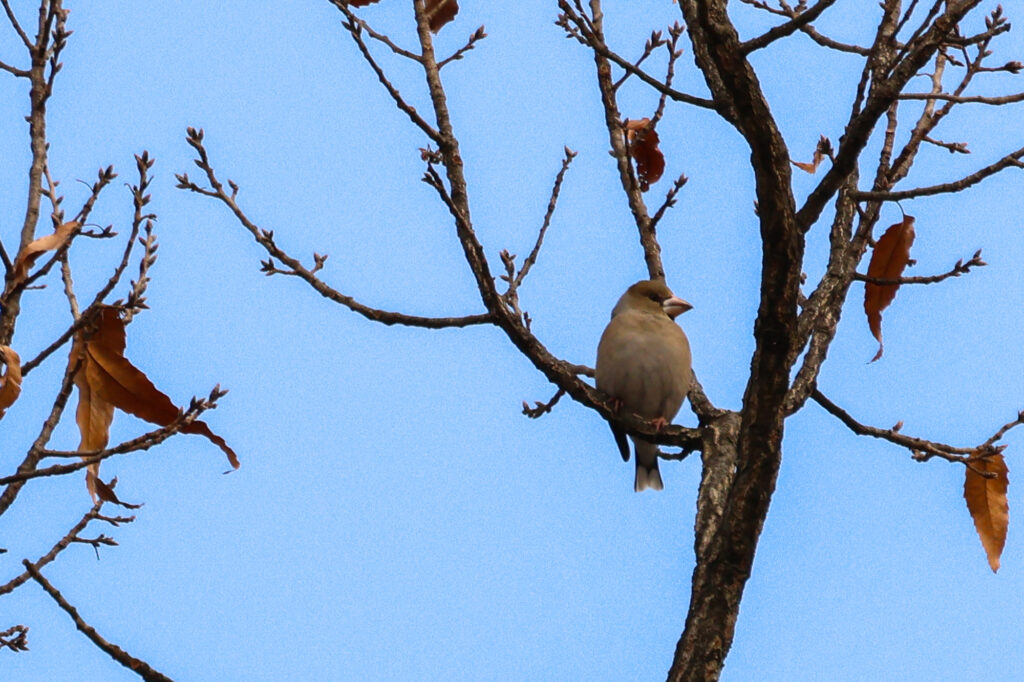 甘樫丘に取り付くと1本の木にイカルやシメ、ツグミが多数とまっているのも確認できました。甘樫丘を登っていくと、地面からノスリが飛び立ったようですが、それは見ることができませんでした。展望台近くではツグミが鳴いていて、ツグミの鳴き声の特徴を教えていただきました。展望台付近では丘の下の方にいるビンズイも見ることができました。そして下山中にこれも初めてアオゲラを見ることができました。