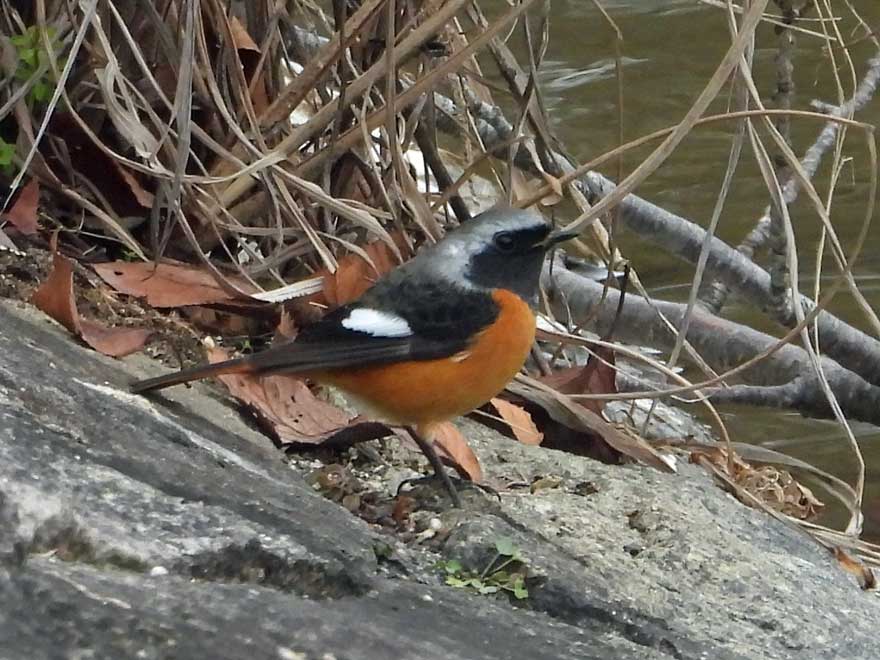 豊浦休憩所で昼食の後、甘樫丘の山麓を進み、飛鳥川ではキセキレイを観察し、川沿いの草むらで鳴いていたアオジとホオジロの鳴き声の違いについても説明を受けました。