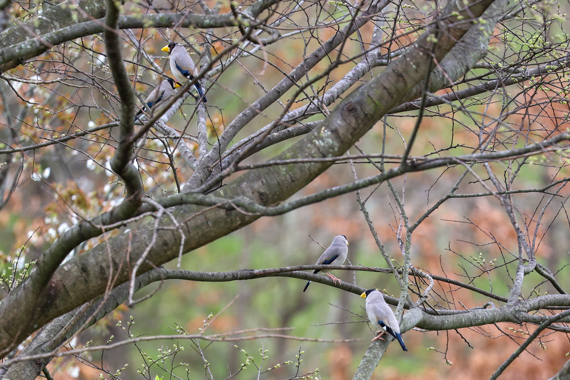 イカルが群れで鳴き交わすところ、コゲラの交尾のようす、ケリが歩いたり飛んだりするところ、ダイサギの飾り羽根や目先の婚姻色などをじっくりと観察。