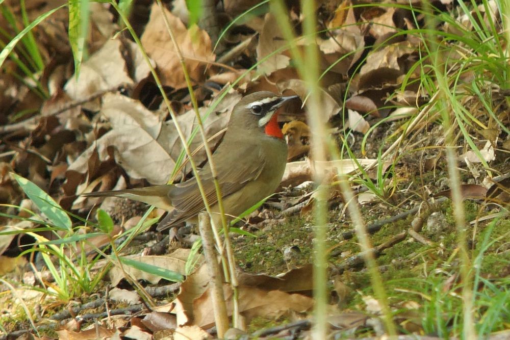 渡り鳥なので12月はいませんが、11月万博公園探鳥会で初めて観察したノゴマを紹介する。ノゴマは北海道に繁殖している夏鳥、大阪近郊では春秋の渡り季節に通過する旅鳥で、特に秋によく観察されている。万博公園探鳥会では、これまで40年間で一度も観察していなかったが、先月11/8の探鳥会では先頭を歩いていた参加者のほぼ半数の方が、日本庭園でノゴマ♂を観察された。探鳥会終了後に橋本昌宗氏がノゴマのいた現地に戻り、上記写真を残してくださった。