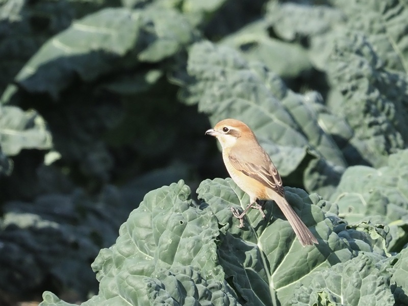 コスモス館周辺でジョウビタキやモズを観察。遠くの電柱にチョウゲンボウの姿も。