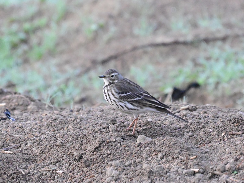 法道寺裏の池でオシドリやマガモを観察後、農耕地へ。耕耘作業中の田圃にタヒバリやハクセキレイ、ケリなどが集まってきていた。