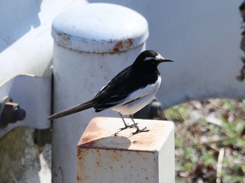 鳥合わせ後の帰りがけ、法道寺川の橋の欄干に止まり囀るセグロセキレイが見られた。
