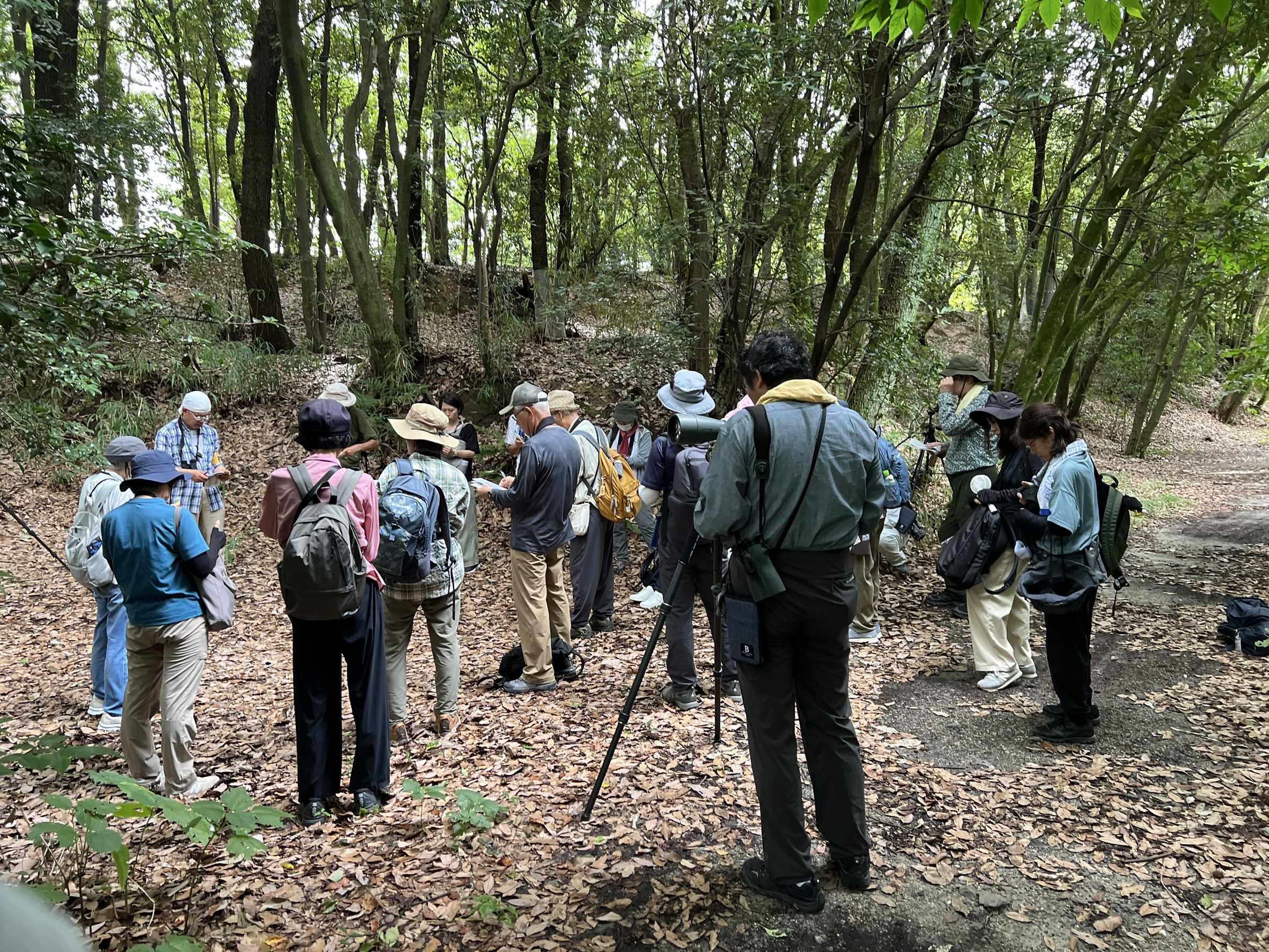 ひたすらに暑かった今年の夏。6月が雨で中止になり、7月、8月と夏休みで、服部定例はなんとか酷暑が過ぎてからの再開にできたのか?降水確率50%の曇り空、日差しはないし、何なら風も吹いていて、まがりなりにも秋の気配じゃあないか?あとは鳥が出てくれるとよいのだけど、だいたい9月の定例の時期には、渡りの波を外す・・・というジンクスができつつあります。それが認知されているのか、毎年9月は参加者数が少なめで、今回も定員を大きく下回る18名。そこは視点を変えて、3か月ぶりのリハビリにちょうどよいコンパクト感とも言えます。