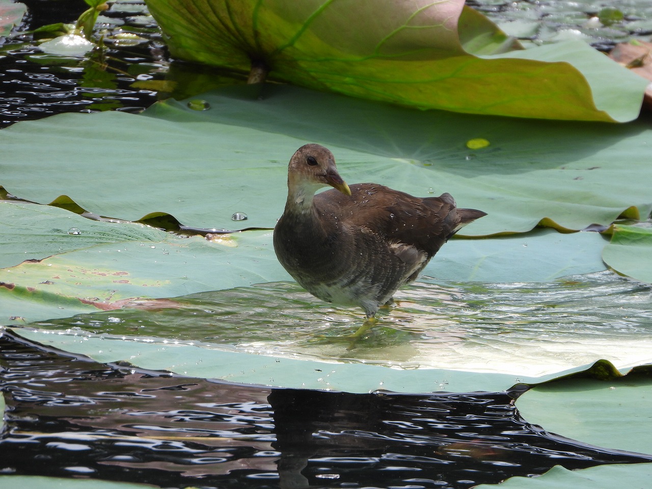 ああもう、しっかり時間オーバー決定。お昼もまだなのに、気持ちだけ満腹で山ヶ池へ。すると、なんとハスの葉の上を歩く長い指・・・!いえ、バンの若鳥です。終盤の追い込みがすごくて、期待感が一気に〇ンカクを求めてしまいます。ドウドウ。