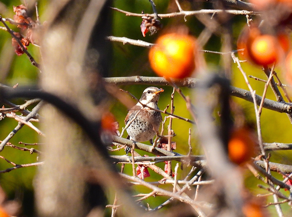午後からも様子は変わらず棚田に出てもモズしか居なかった。澄み渡った青空に期待の猛禽類も飛ばず仕舞いで、鳥合わせでは22種と種数も少な目。それでも終日好天に恵まれ、まだ残る紅葉やサザンカの花を愛でながら今年最後の枚岡を楽しんだ。