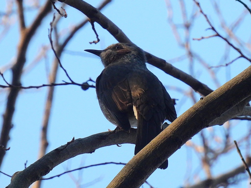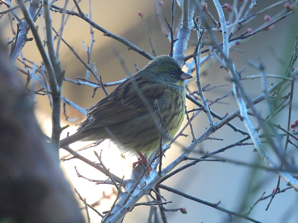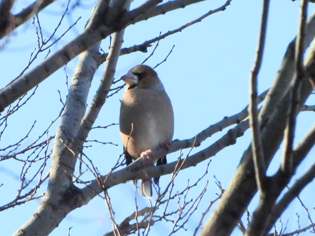 開始直前、ツグミを見ていると奥まった陽の当たる枝にシメとイカルが止まっているのを見つけ、幸先の良いスタートを切った。枚岡神社に今年一年の安全と多くの野鳥との出会いを祈願してから麓へ向かうと早速アオジやシロハラの声がする。時折ヒッ、ヒッ、とルリビタキの声も聞こえてくるが、残念ながら最後まで姿を見せてくれることは無かった。