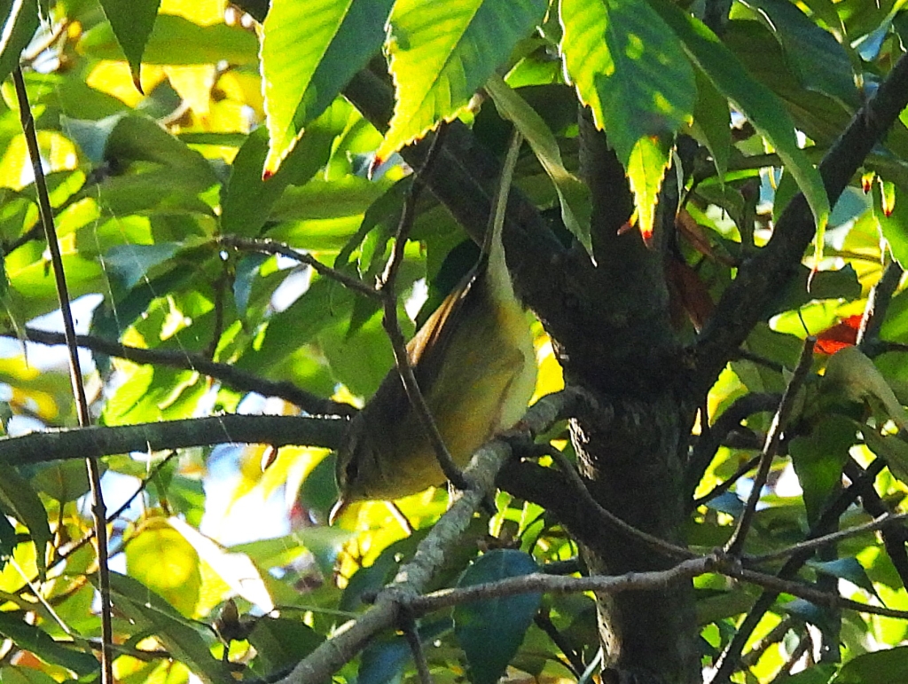 休憩を挟んでらくらく登山道を進むと、ヒーーーッと一声だけトラツグミの声が聞こえ、快晴の空にノスリ3羽が次々と通り過ぎる。慈光寺に到着するとカラの混群が元気に出迎えてくれて前半が終了。昼食時にはヒリヒリヒリと近くでリュウキュウサンショウクイの声がした。