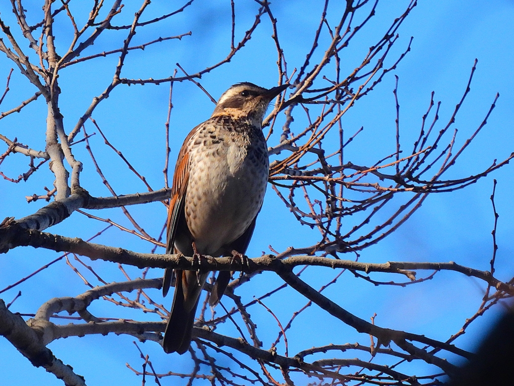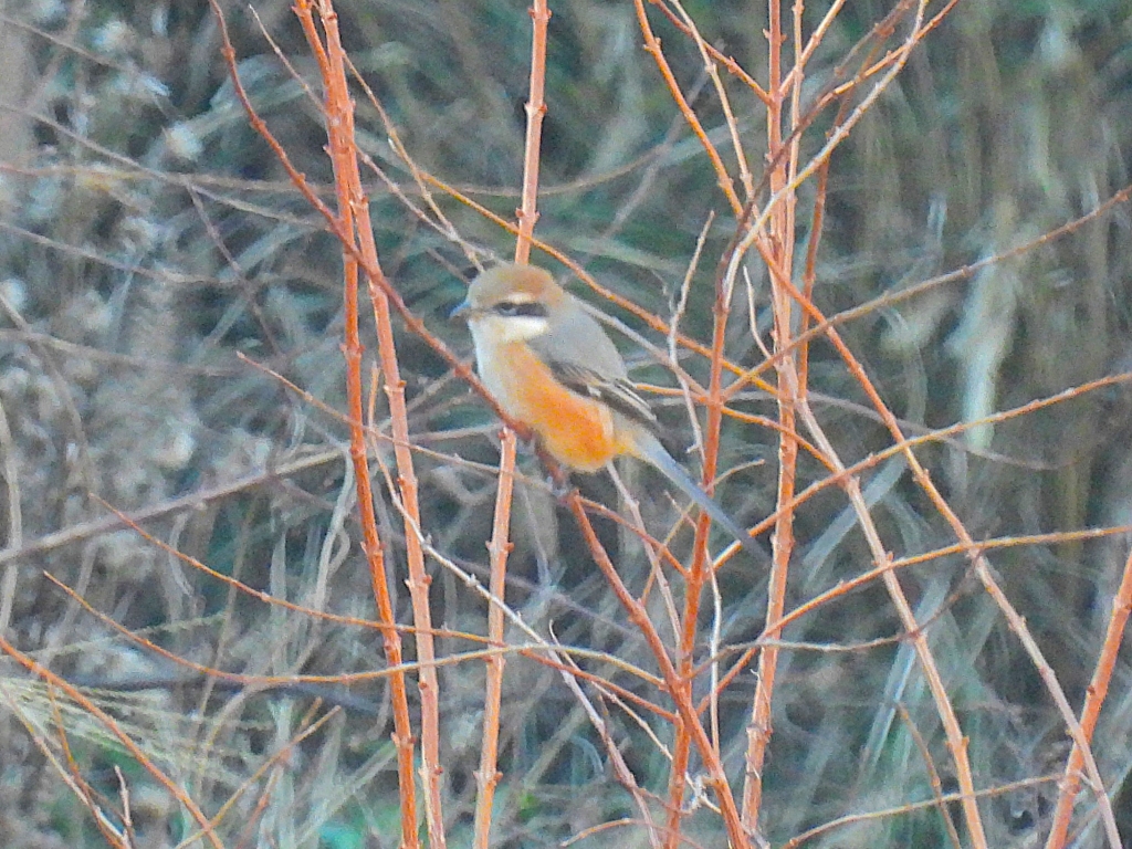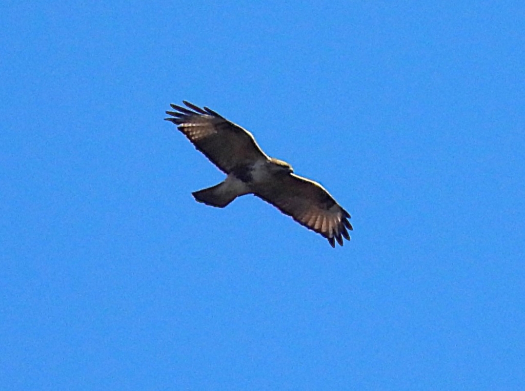 午後から棚田へ廻ったがモズが数個体居たぐらいで、期待していたホオジロやカシラダカは見つけ出せなかった。その後も静かな状態が続いたが、最後の休憩時には広い青空を一直線にハイタカが飛び、この日一番の盛り上がりを見せてくれた。