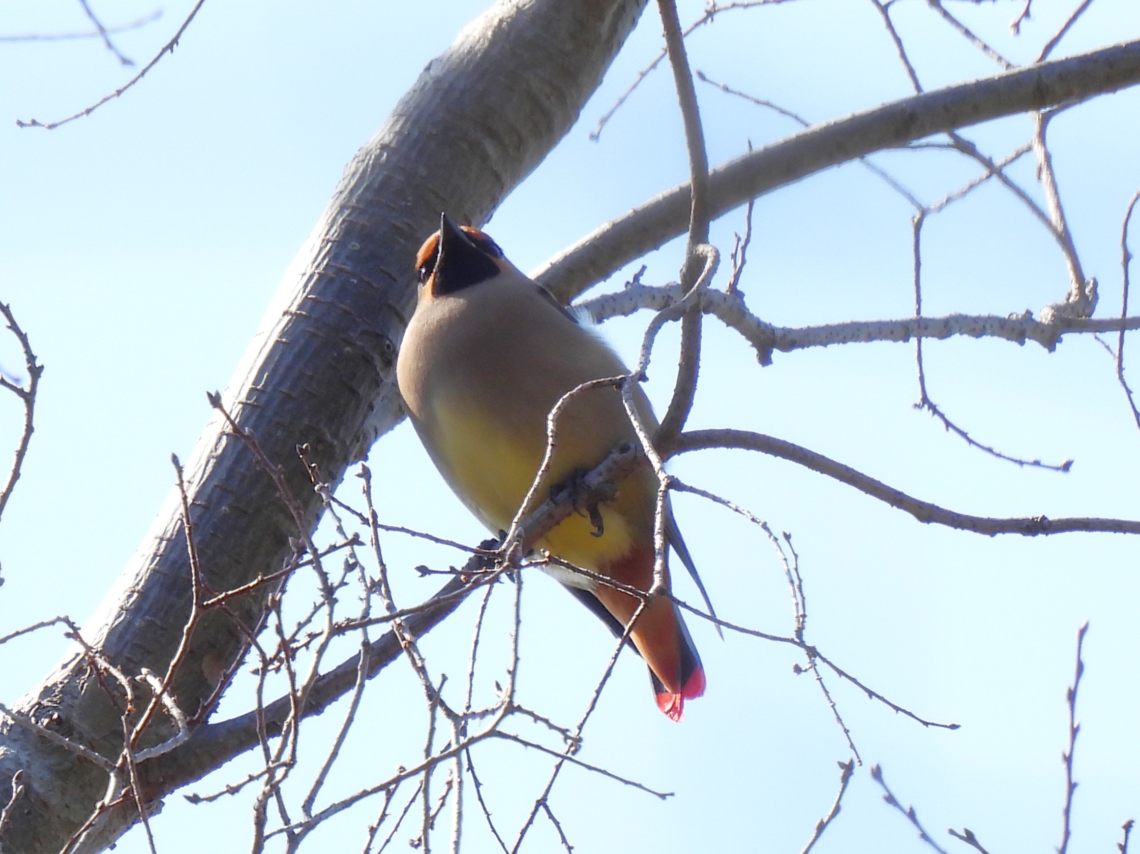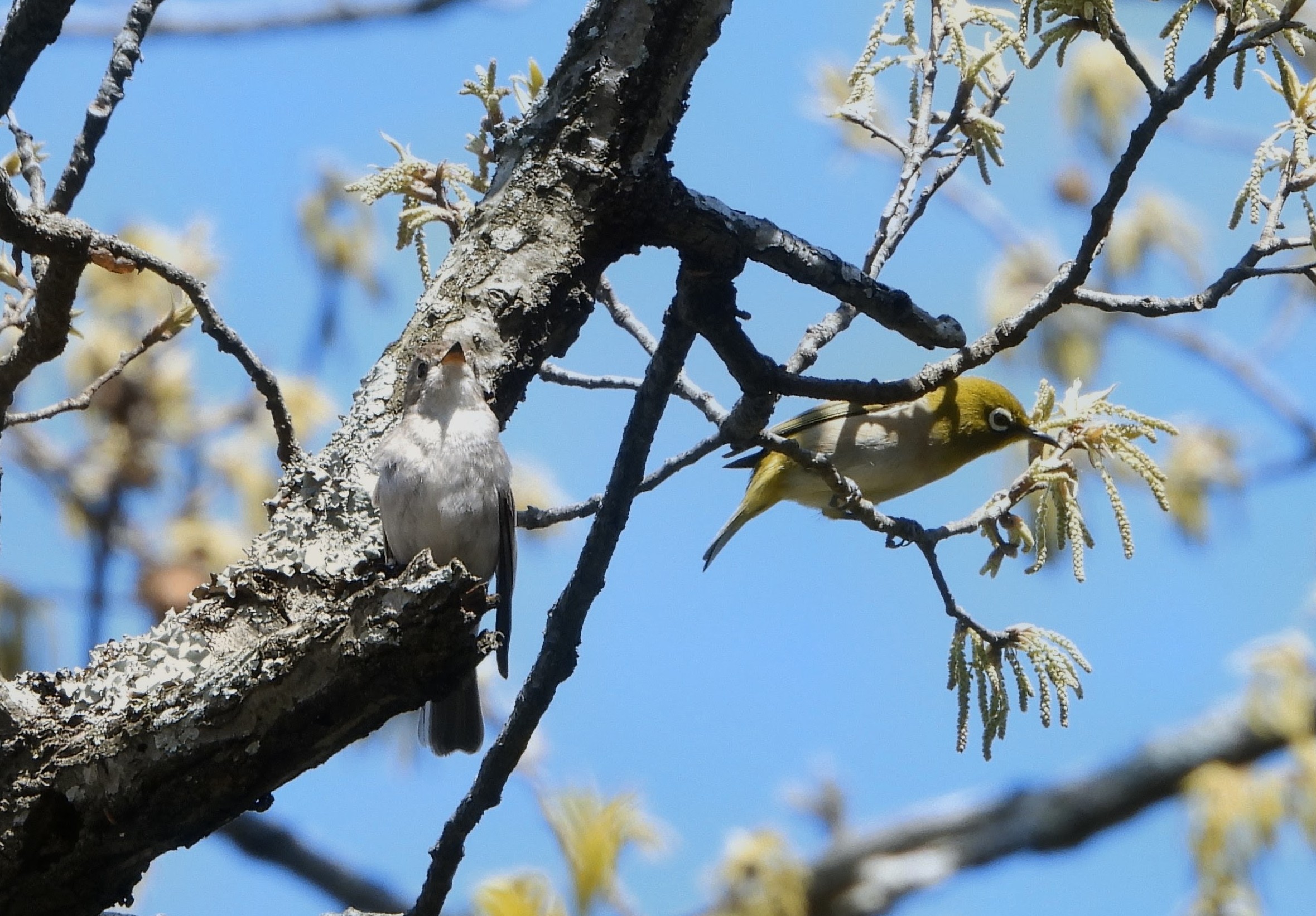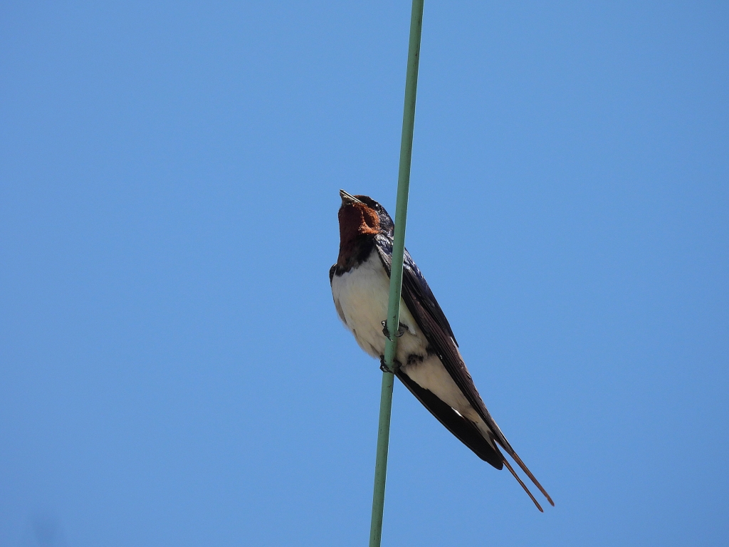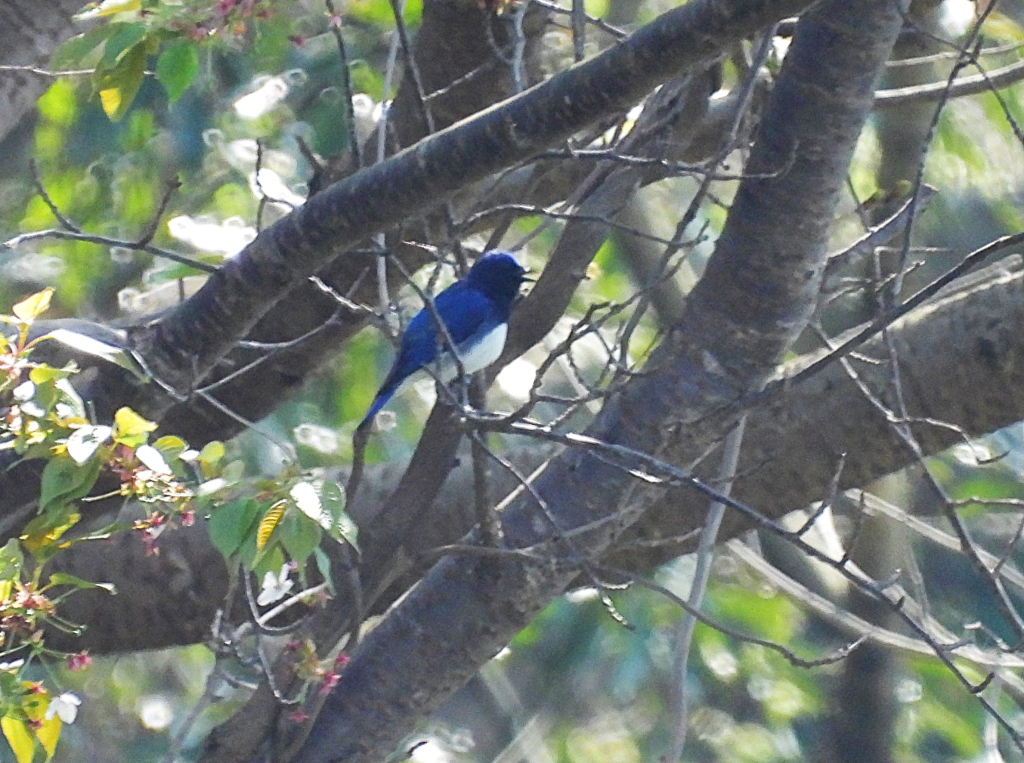 後半がスタートして間もなくコサメビタキが囀りだし、求愛中なのか2羽が忙しく飛び回っていた。棚田でキジには出会えなかったが、田植えの準備が進む田んぼの上をツバメが飛び交っていた。下り始めると空からヒーッヒーッと鳴く声がしたかと思うと数十羽のヒレンジャクがあっという間に飛び去った。更に進むと遠くの山肌から頻りにオオルリの声が響き、木陰の横枝で囀る姿を漸く見ることが出来た。最後はヒレンジャク数羽が樹上に止まっていたのをじっくり観察していると、すぐ目の前の薮でコマドリが囀り出すなど、貴重な2種が同時に出て大賑わいで締めくくった。