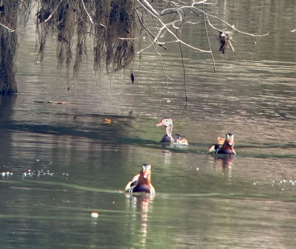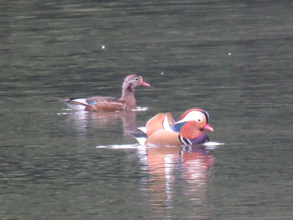 前日は雨の予報でしたが、若干青空も見える曇り空の下、秋を感じる心地よい気候に恵まれました。スイレンの葉の上を歩くキセキレイの姿をじっくり観察し、赤穂池と奥ノ池ではオシドリとマガモのエクリプスを確認し、オシドリはクチバシの赤みで雄雌を見分け、マガモは頭部が少しずつ緑色に変わり始めている様子が印象的でした。正午前から雨が降り出したため、早めに鳥合わせを行い解散しましたが、秋の訪れを感じる充実した探鳥会となりました。写真提供:藤﨑さん、山下さん、石川さん