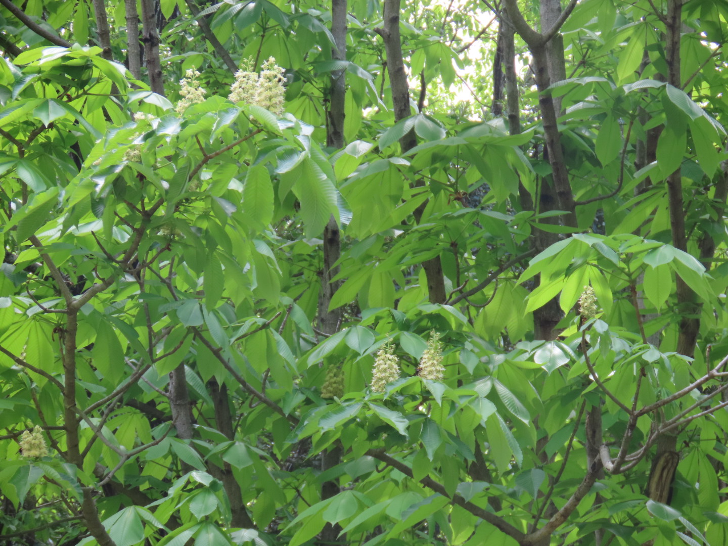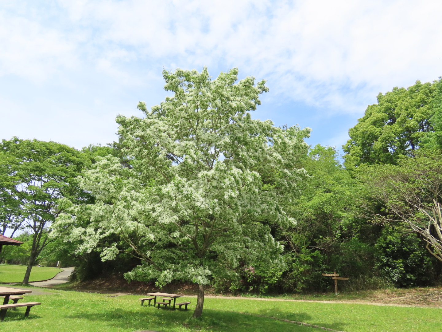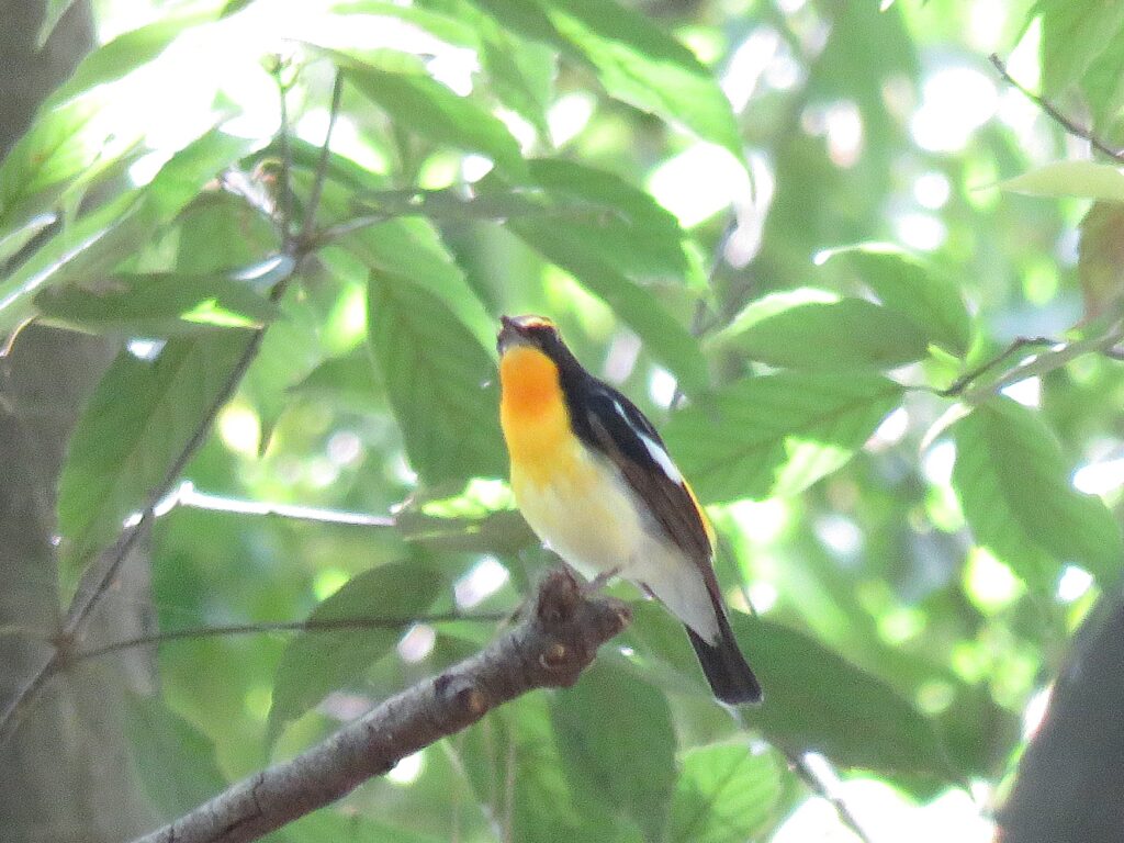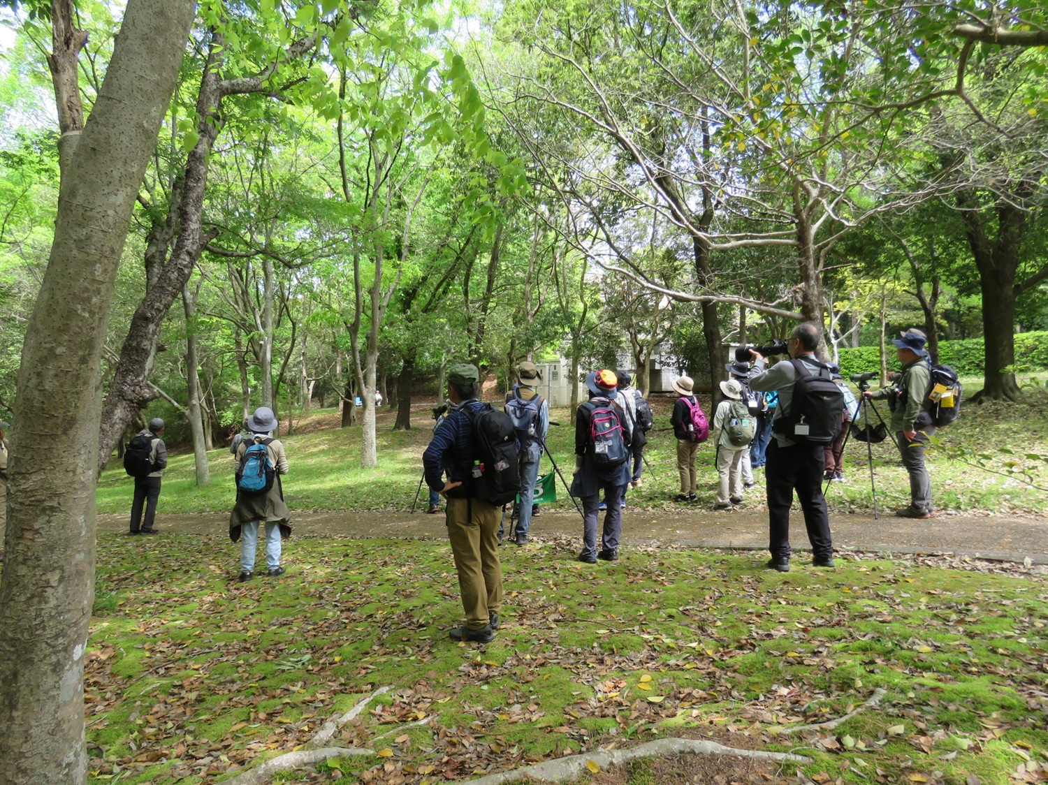 集合場所のパークセンターでイソヒヨドリに出迎えられ、赤穂池では一羽残るオオバンを確認。梅の里ではクチバシが鉛色の夏色に変わったシメを観察でき、森の方ではキビタキのさえずりが響き渡りました。新緑の葉に苦戦しつつも、粘り強く探してその美しい姿を観察できた参加者もいました。後半は満開のナンジャモンジャを愛で、足元のキュウリグサでその名の通りのみずみずしい香りを楽しみました。早めの夏を感じ、気持ちよく終えることができました。写真提供:藤﨑さん、山下さん